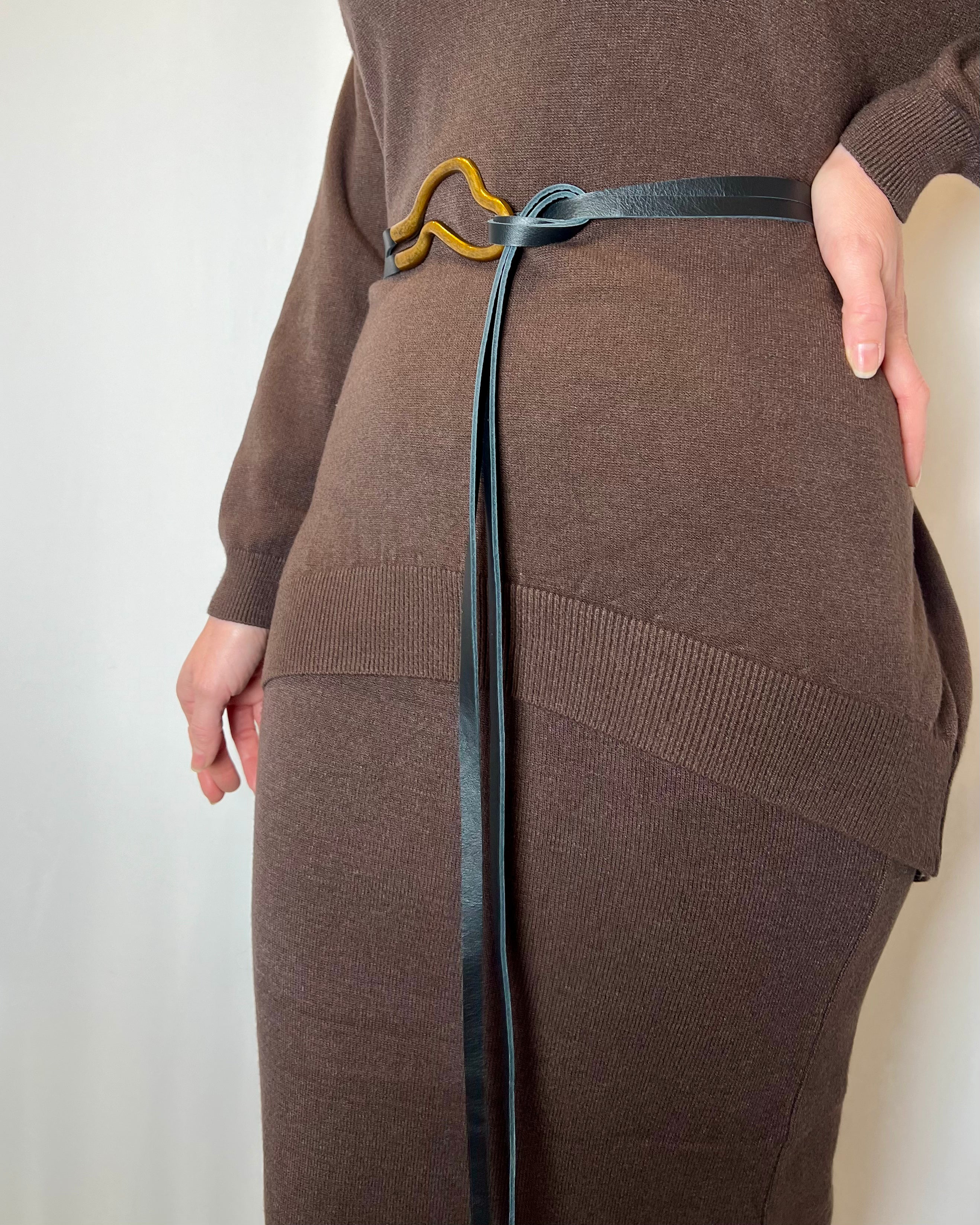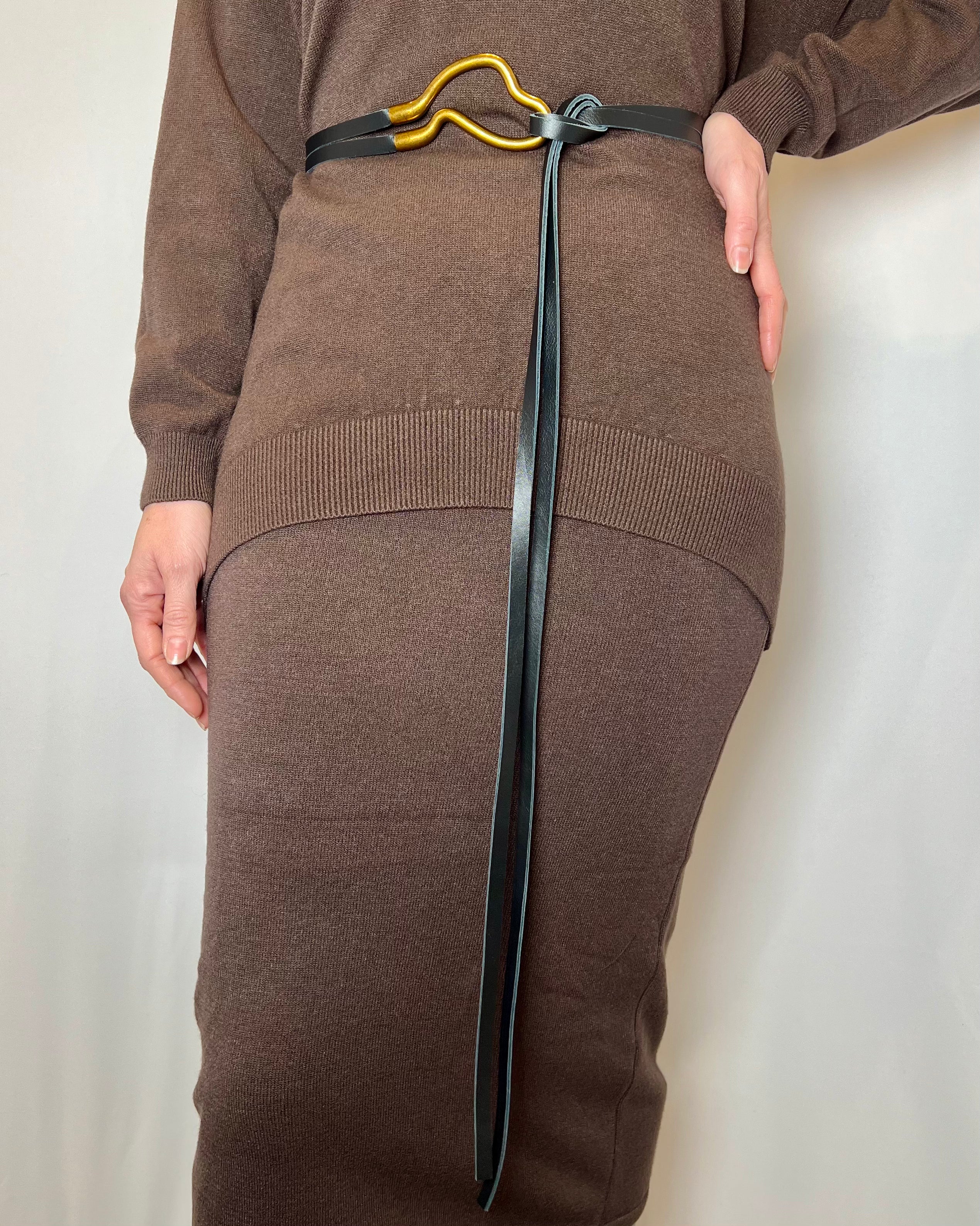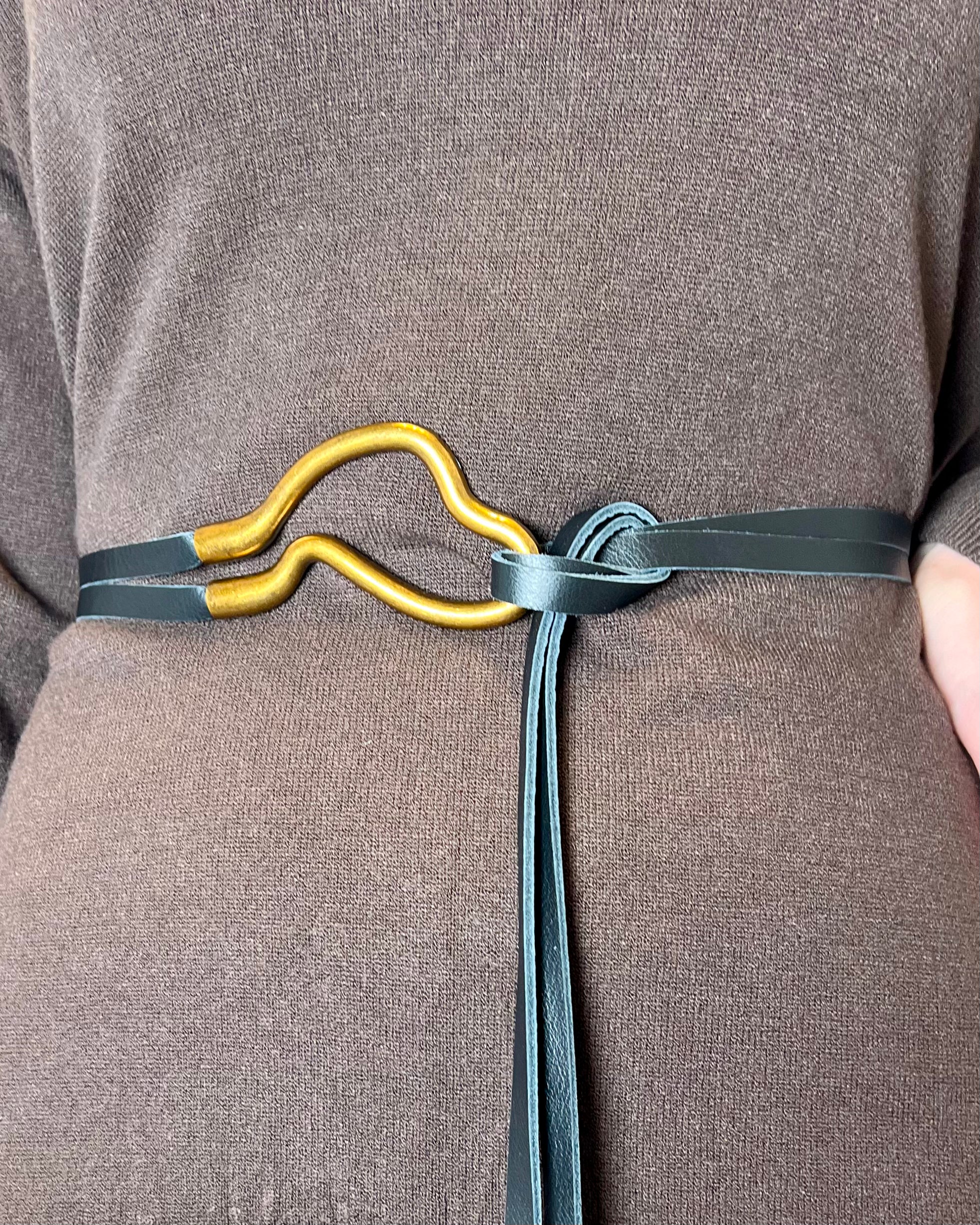 Elegante cintura in vera pelle con fibbia in metallo color oro. Chiusura con nodo.