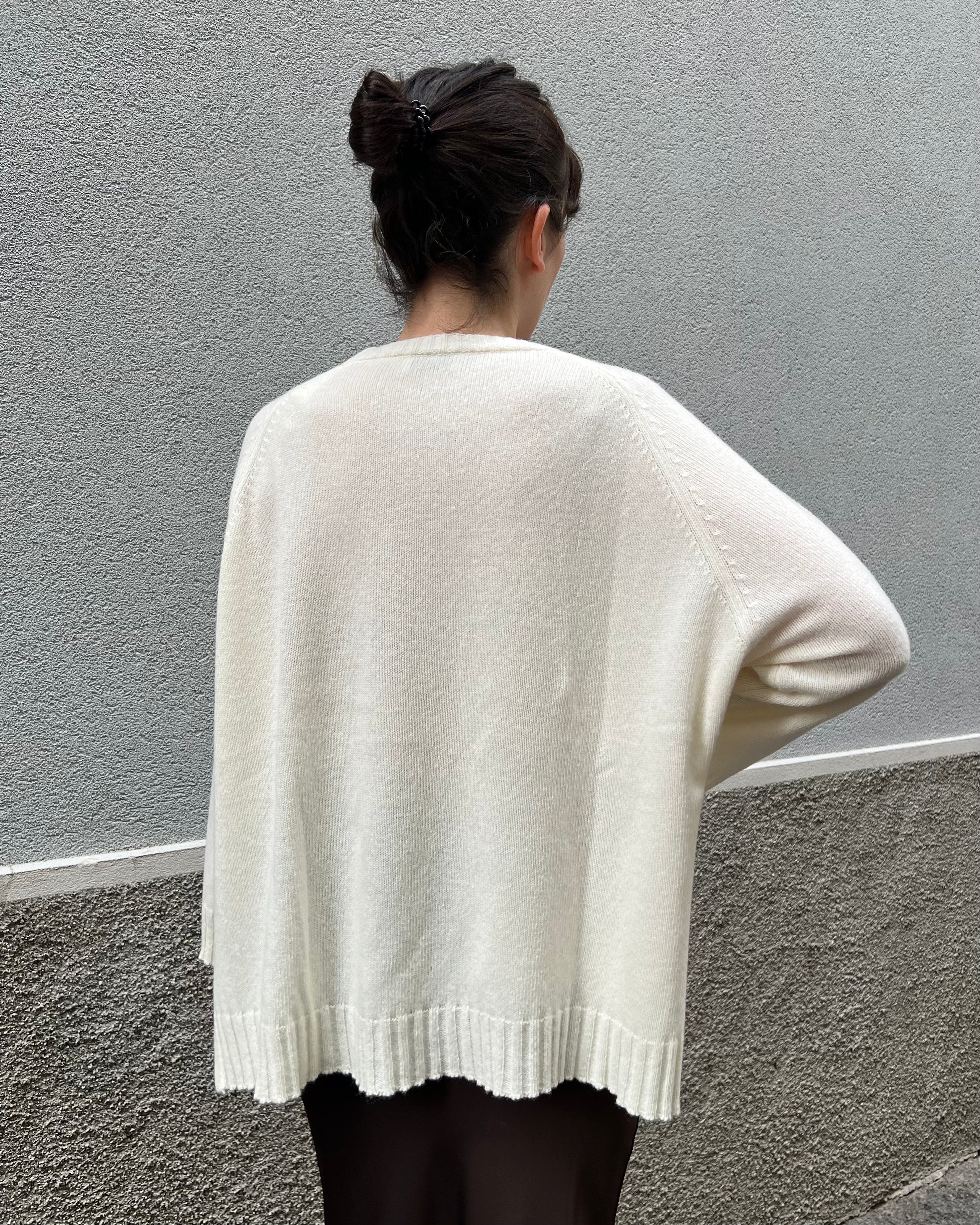 La nostra maglia Dora sarà la base per la creazione di tantissimi look autunnali: morbido al tatto, comodo e perfetto per fare delle stratificazioni interessanti.