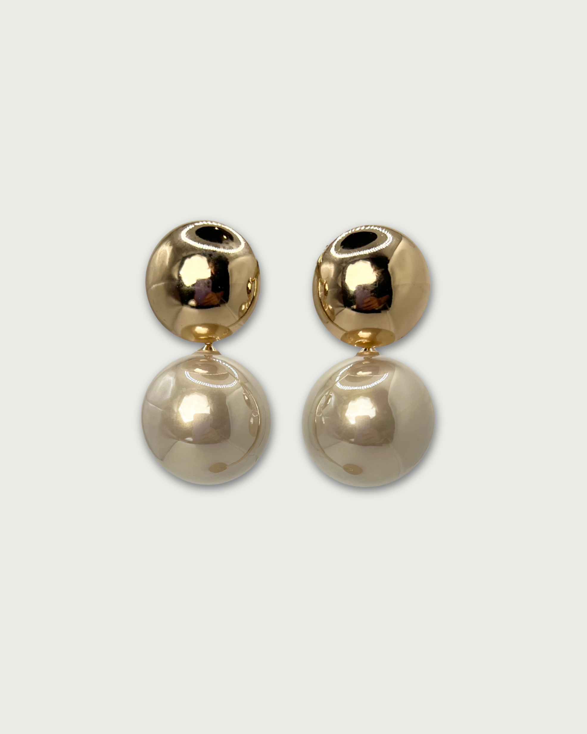 Orecchini dorati pendenti con maxi perla.Materiale: acciaio inossidabile e resina.