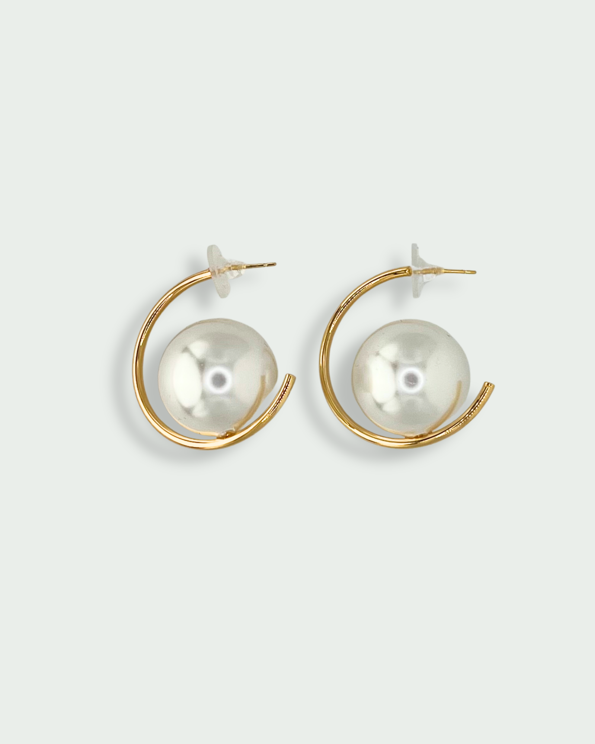 Orecchini a cerchio con maxi perla.Materiale: acciaio inossidabile.