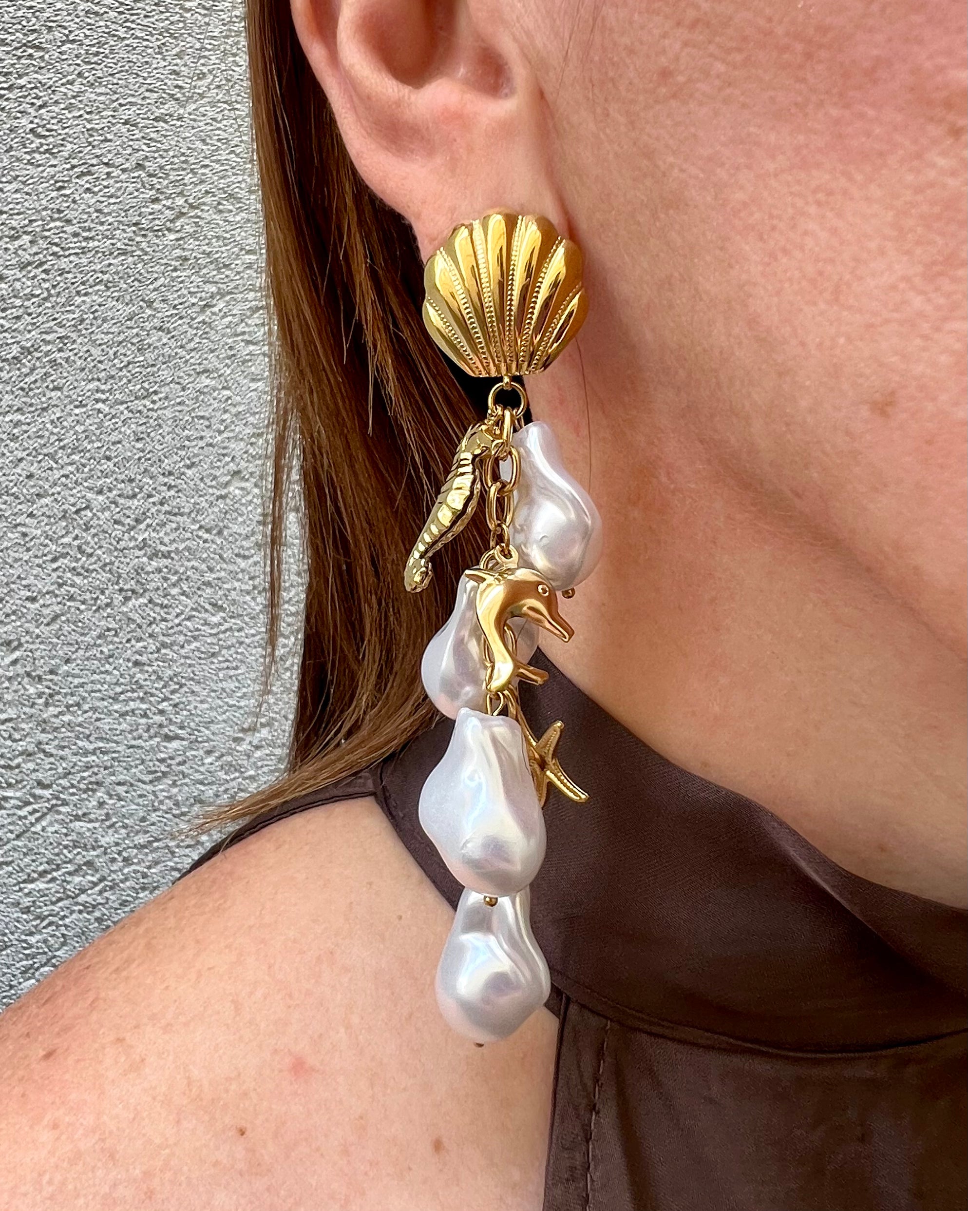 Orecchini lunghi a grappolo a tema mare.Unica variante colore.
