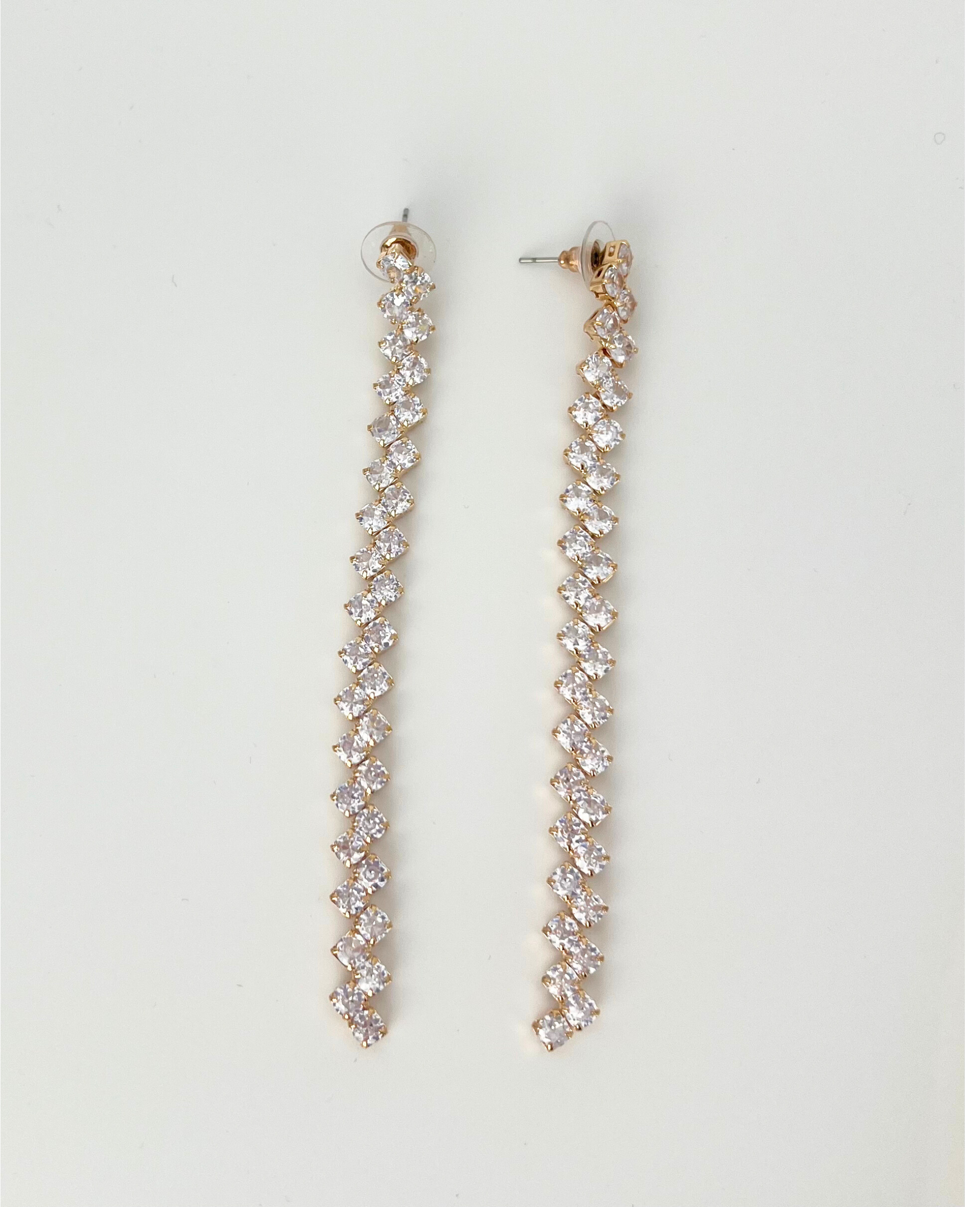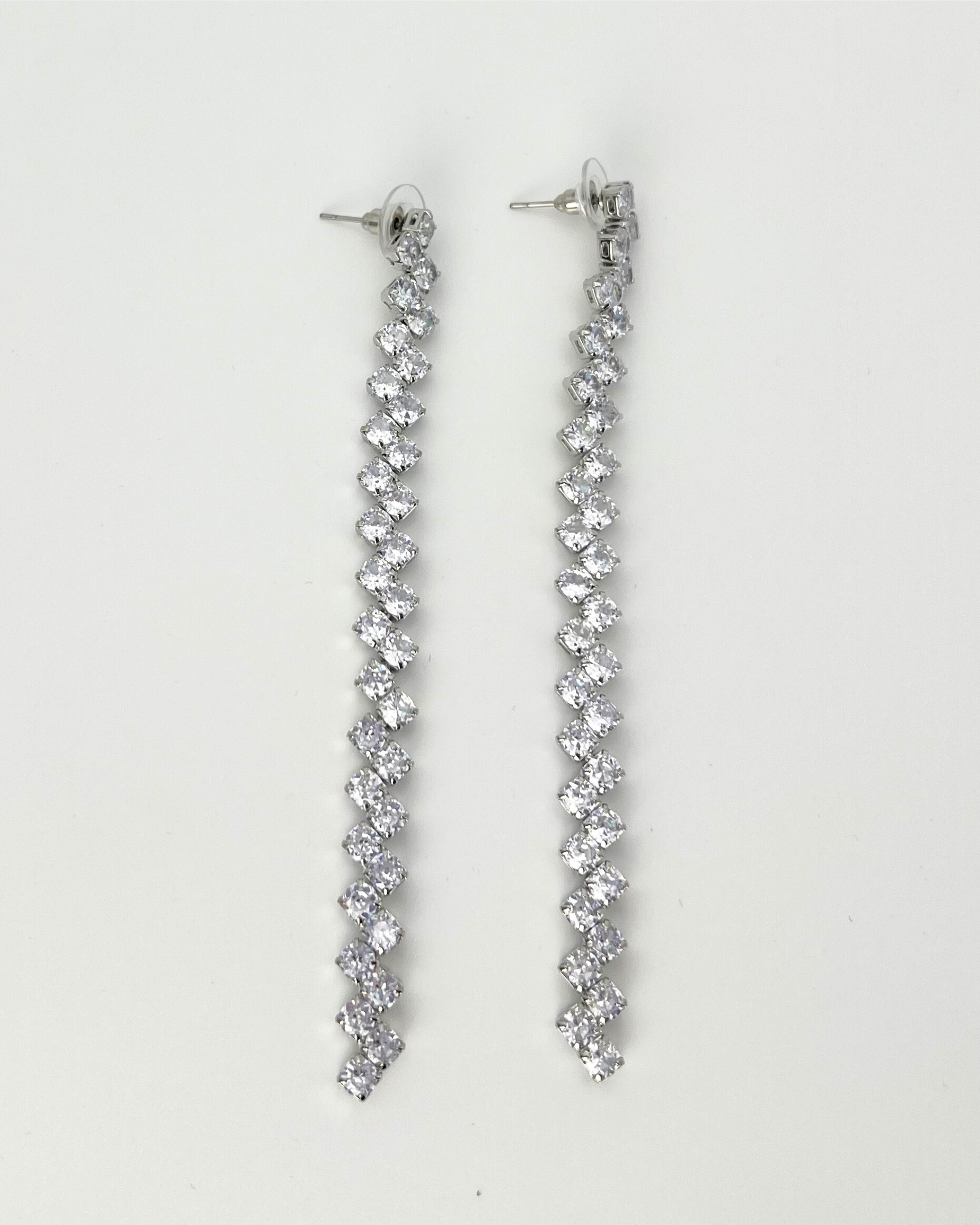 Orecchino pendente lungo con strass.Materiale: acciaio.