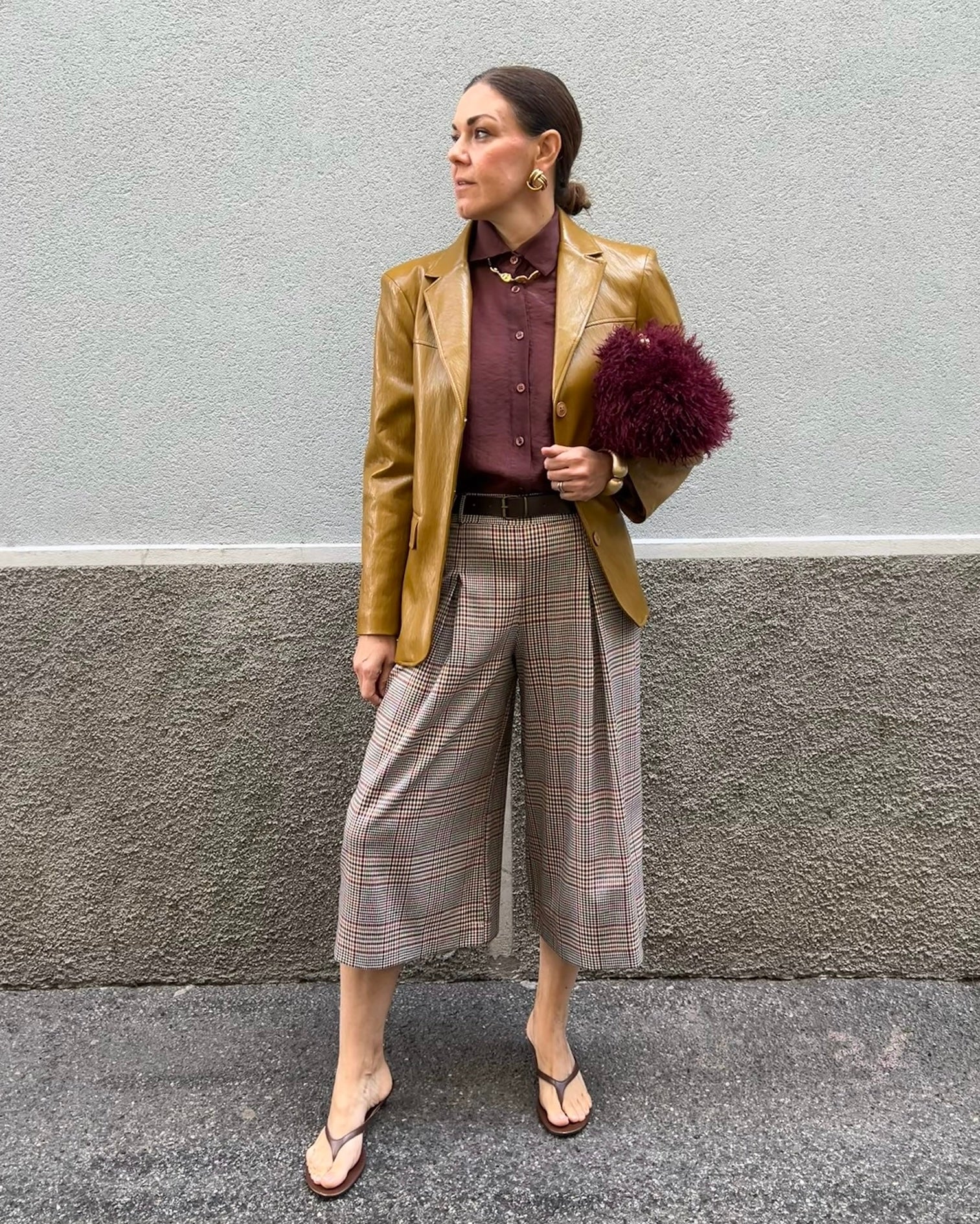 Gonna pantalone in tessuto stampa principe di Galles. Chiusura con cerniera laterale. Dettaglio di pince sulla parte anteriore. Cintura inclusa.